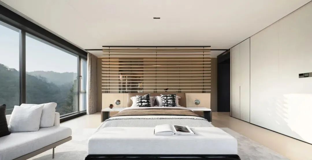 别墅上下共有5個套房,影音室、健身房、瑜伽室、書房等等一應俱全,開放式露台将室外美景引入。對(duì)内,主卧也有獨(dú)立的私人陽台。