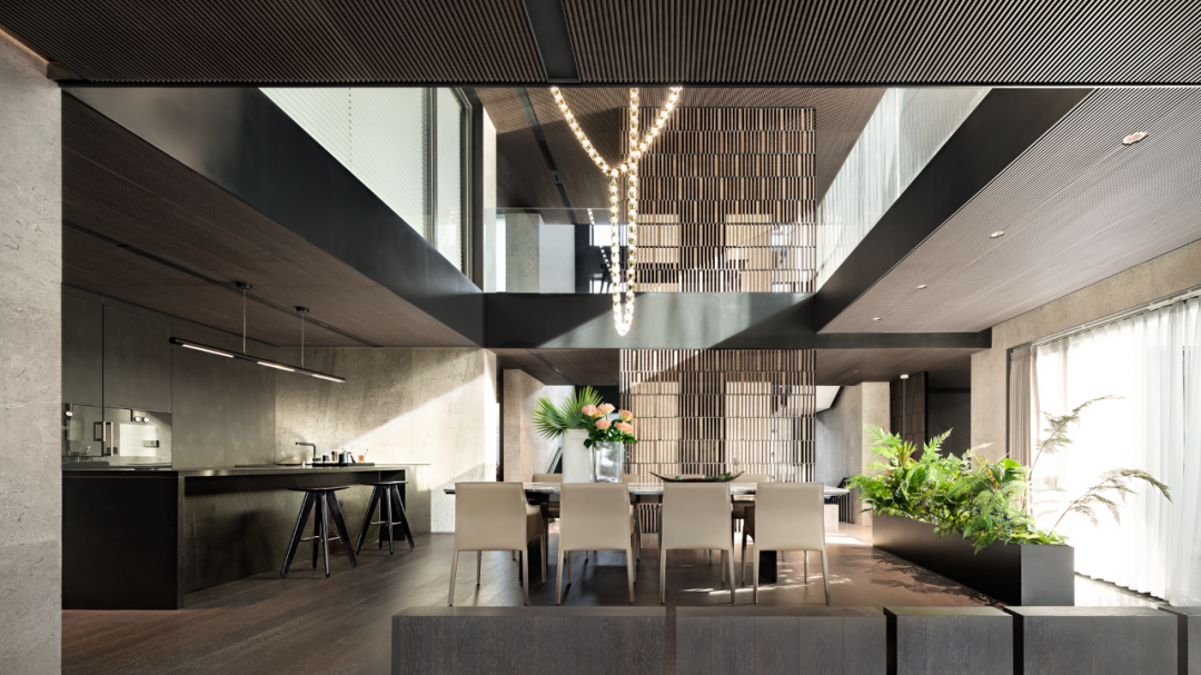 高級(jí)灰與暖木色交織在陽光下,落地窗将樹影婆娑的景象牽入室内,感受一天的時間流逝。茂盛的綠植将室内裝點(diǎn),與室外相得益彰。