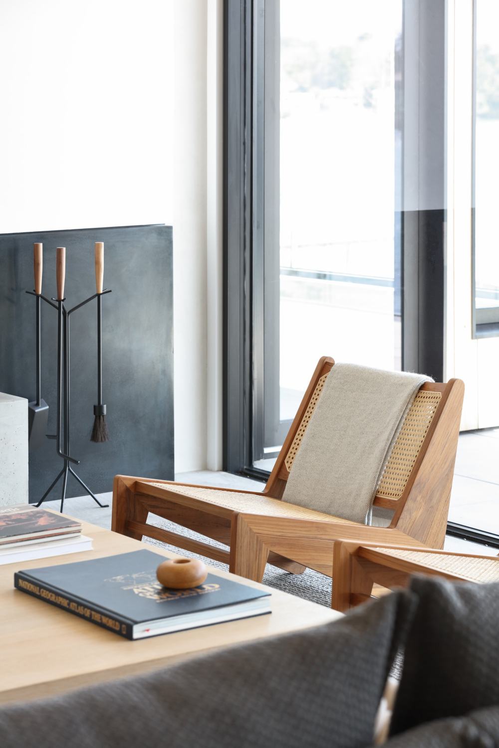 正面巨大的落地窗面對(duì)著(zhe)寬廣的湖面